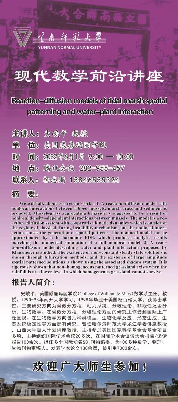 现代数学前沿讲座第001讲:史峻平教授(美国威廉玛丽学院)