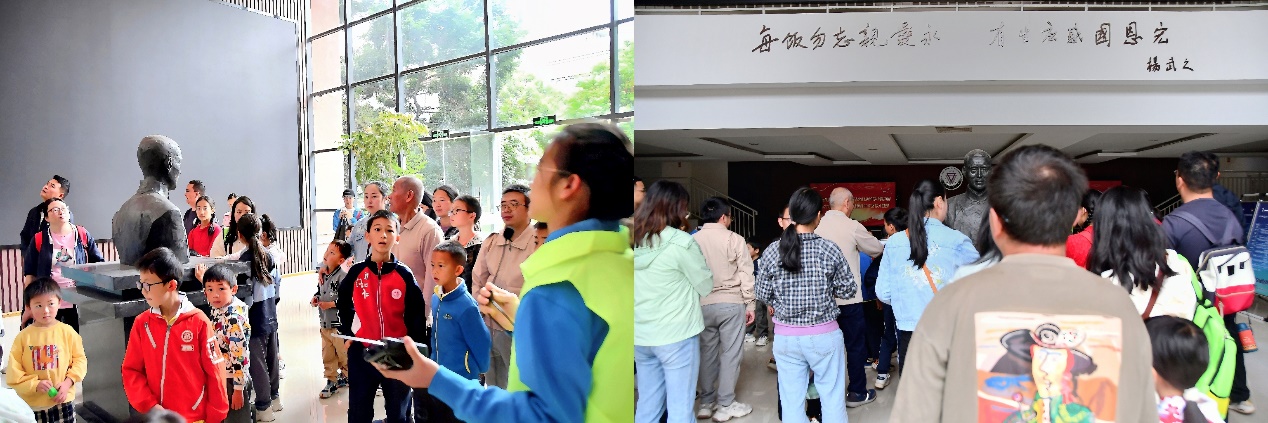 首先,小朋友们在家长的陪同下跟随志愿者来到数学学院,志愿者介绍了数学学院的总体概况。来到杨武之先生的雕像前,讲解员向大家讲述了这位教育先驱的历史故事、先进的教育理念、对中国数学科学教育发展巨大贡献。