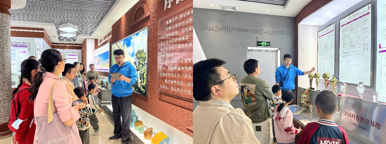 随后,家长和小朋友们参观了院史馆,志愿者们通过呈现学院由西南联合大学建校至今的历史发展足迹、讲述学院历史名家与故事、介绍馆内保存的各种珍贵老式教具和手写教材,多层次多维度为家长和小朋友展示学院的发展与数学的魅力。