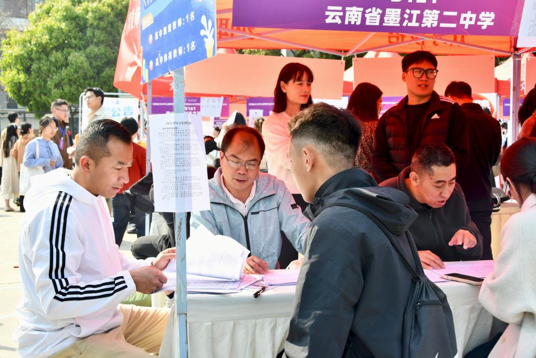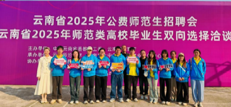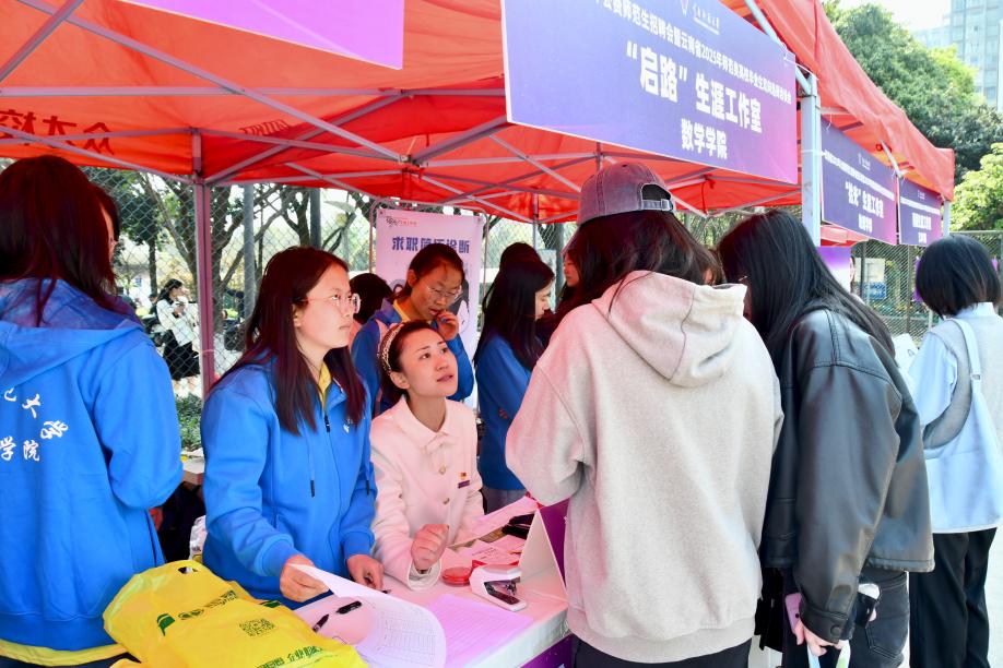 云南省2025年公费师范生招聘会暨云南省2025年师范类高校毕业生双向选择洽谈会于3月13日在云南师范大学呈贡校区西区篮球场举办。数学学院 “启路” 生涯发展工作室及师生党员志愿者全程参与,通过精准服务、专业指导和暖心关怀,助力毕业生求职之路。