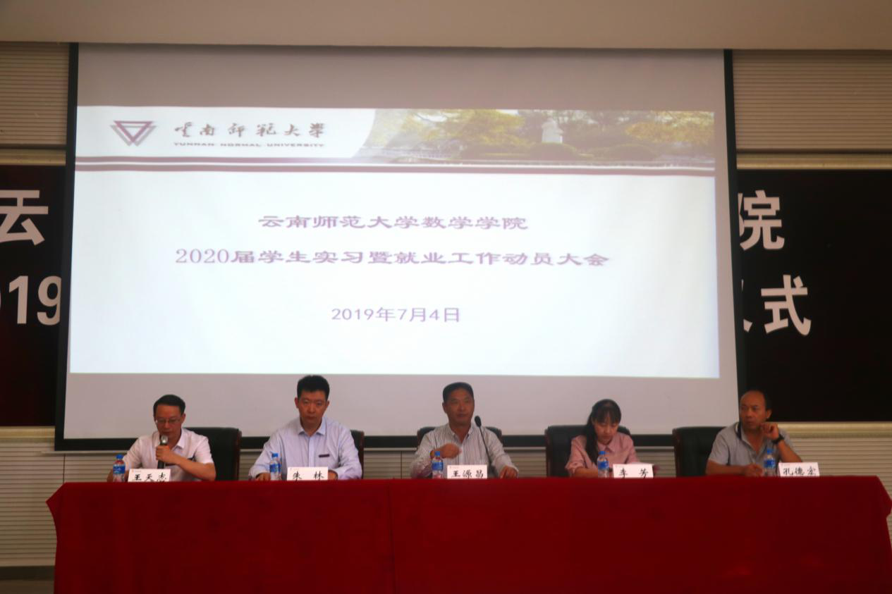实习实训和就业是教育教学环节的重要内容,是大学生走向社会的必经之路。实习实践是检验与完善教育教学成果和就业的需要,就业是大学阶段学习的验收。7月4日,数学学院在武之楼201报告厅召开了2020届本科学生实习暨就业工作动员大会。院长王源昌、副书记朱林、副院长李芳、副院长王天志,以及实习负责人孔德宏、负责就业工作的辅导员夏磊、实习指导教师、2016级班主任和2016级全体学生参加了会议。