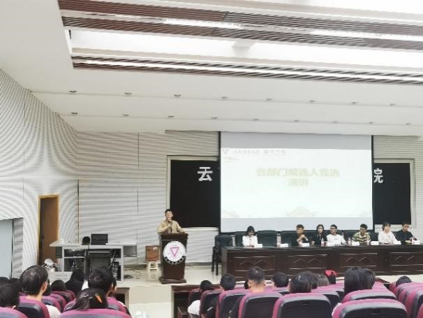 本次换届大会由学院学生会主席杨凯玉主持。会议首先对上一年度学生会的工作做出总结,同时对学生会全体成员提出了建议,希望大家真正做到学以致用,第二课堂活动和所学知识相结合。会议第二项议程进行了各部门12位候选人竞选演讲,各位候选人分别从自身特点,对部门认识以及未来的具体规划等方面作出发言。发言结束后,秉承民主公正公平公开的原则,所有人对12位候选人进行投票选举。会议第三项议程是新一届主席团的选举,于老师对主席团六位候选人:记者站夏体智、生活部吴翔、文艺部李雪、办公室赵敢慧、外联部杨智敏以及体育部罗磊的基本信息进行了介绍。随后六位候选人分享了一年的工作经验,言语间流露的是匆匆岁月里个人与部门成长凝聚的美好回忆和对未来的展望。最终由原主席团和学生会全体干事组成的评审团对竞选人员进行投票,经过统票,于老师公布最终投票结果,新一任主席团成员为:杨智敏、吴翔,六部门的负责人分别为:记者站张桂豪、赵佳祎;办公室姬龙、刘慧;生活部王凌睿、曾宇新;体育部邓成卓、王梅;外联部王顺斌、张永洁;文艺部孟保成、穆晗悦。会议第四项议程是对上一届优秀学生会干事表彰,以及为本届学生会骨干颁发聘书。获奖同学以及学生会骨干怀着激动与感激的心,走向领奖台,领取了属于他们的荣耀。