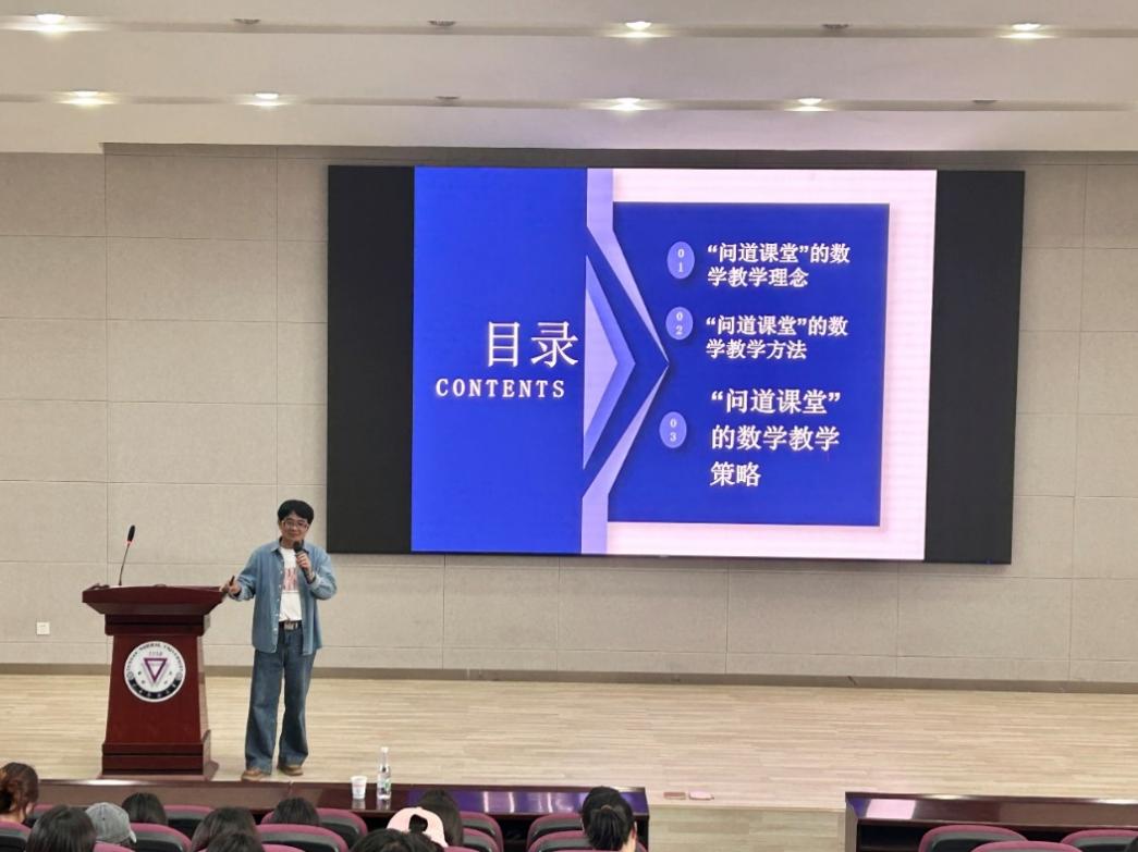 讲座中,王彬以学校长期探索的“问道课堂”模式为核心,阐释其教学理念:“问”是基于问题解决的思维培养,“道”是教与学的路径创新,二者融合旨在构建以学生为中心的高效课堂。他强调,“问道课堂”通过设置真实数学情境,形成环环相扣的“问题链”,激发学生内驱力,在解决问题中落实“四基”“四能”,发展数学核心素养。