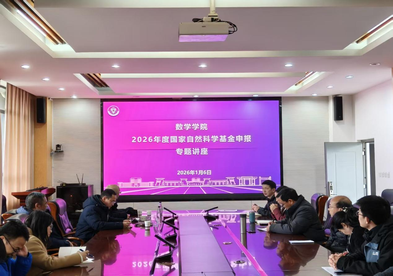 为提升学院科研项目申报质量,助力教师精准把握政策导向与申报要点,1月6日,数学学院在呈贡校区武之楼322会议室举办2026年国家自然科学基金申报专题讲座。本次讲座特邀教育部长江学者特聘教授、国家百千万人才工程人选、国家突出贡献中青年专家、国务院特殊津贴获得者、云南财经大学石磊教授担任主讲嘉宾。陈飞副校长出席活动,数学学院领导班子、中青年教师及部分研究生代表等40余人参加讲座。